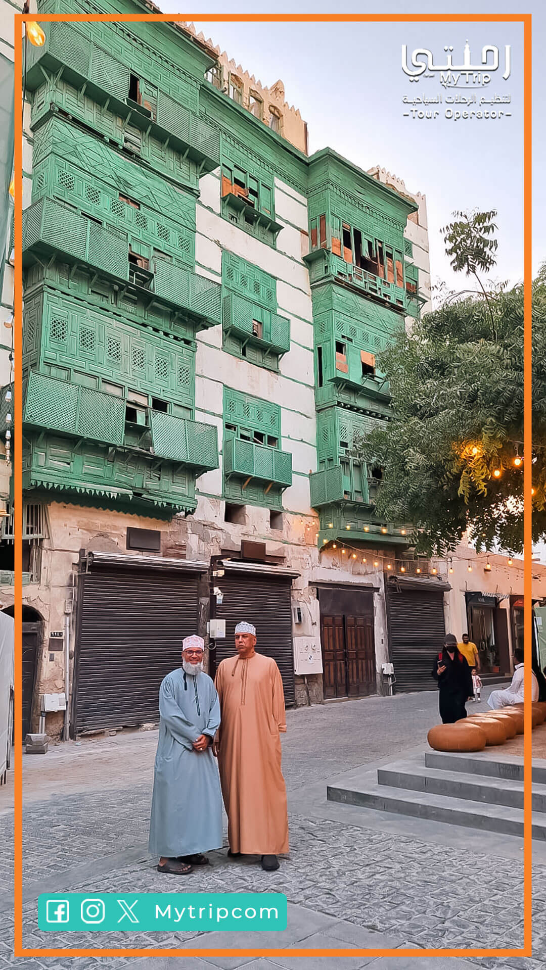 بعدها سنتوجه إلى جدة البلد. هناك سنقف أمام بوابة مكة، وسنتأمل روعة العمارة التاريخية والتطويرية. سنستكشف المنازل الشامخة المصممة ببراعة، والتي بنيت باستخدام الشعب المرجانية من البحر الأحمر. الشرفات الملونة المعروفة بالمشربيات ستضيف لمسة جمالية فريدة للمكان في عيوننا.
