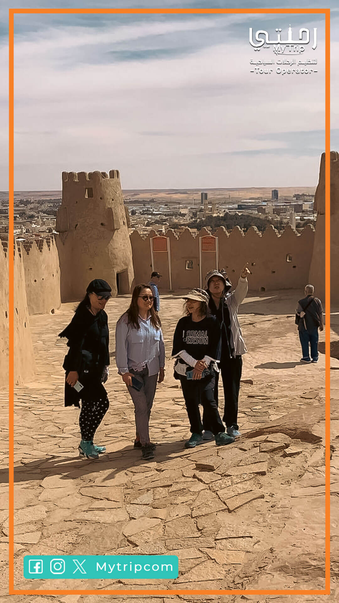 بعد استراحة الغداء، نتوجه إلى مطل برج المملكة للاستمتاع بإطلالة بانورامية خلابة على مدينة الرياض من ارتفاع 300 متر. نلتقط هنا صوراً تذكارية رائعة.